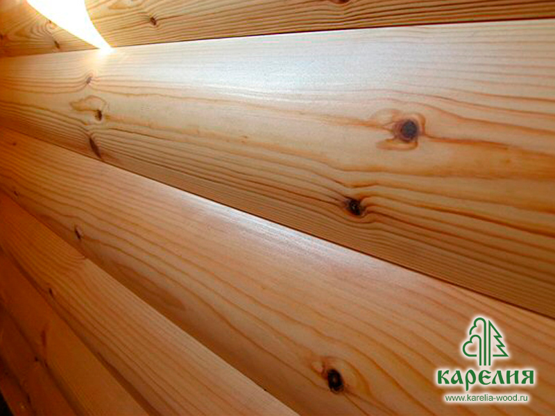 Благодаря наличию на обратной стороне деревянного профиля продольных желобов с доски снимается излишнее напряжение. В результате это позволяет предотвратить эффект растрескивания древесины, что можно увидеть на фото блок-хауса.