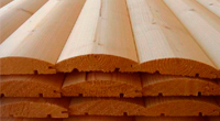 При производстве блок-хауса используется особая схема распила исходной доски по типу «квадрат в круге». Это позволяет получить округлую поверхность профиля, полностью повторяющего очертания оцилиндрованного бревна. Затем заготовки материала отправляют на станок, который выравнивает доску по ширине, а также одновременно на боковых частях вырезают шипи и пазы, а на обратной части – продольные желоба. После этого готовые изделия подвергают дополнительной обработке, благодаря которой специалисты нашей компании достигают желаемой гладкости поверхности материала.